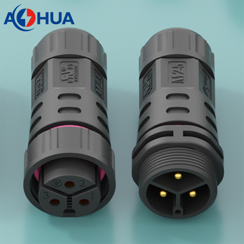PA66 Gold Plated Copper 300V UL SAA TUV Male To Female IP68 25A 3pin Waterproof Plug Thread Type
